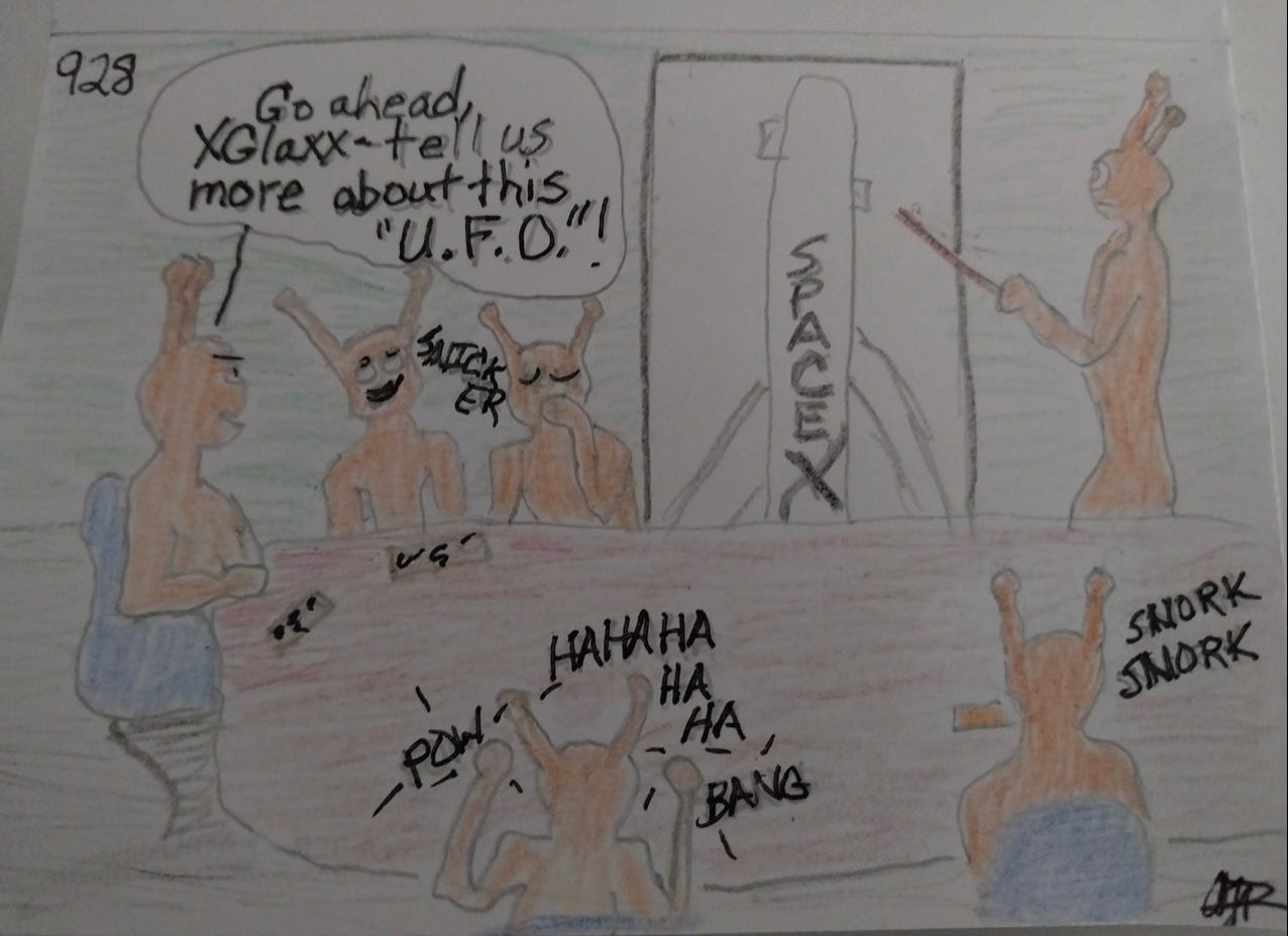 No one drew a cartoon this week — until today! Here’s Ali Redford with a wonderful nine two eight: